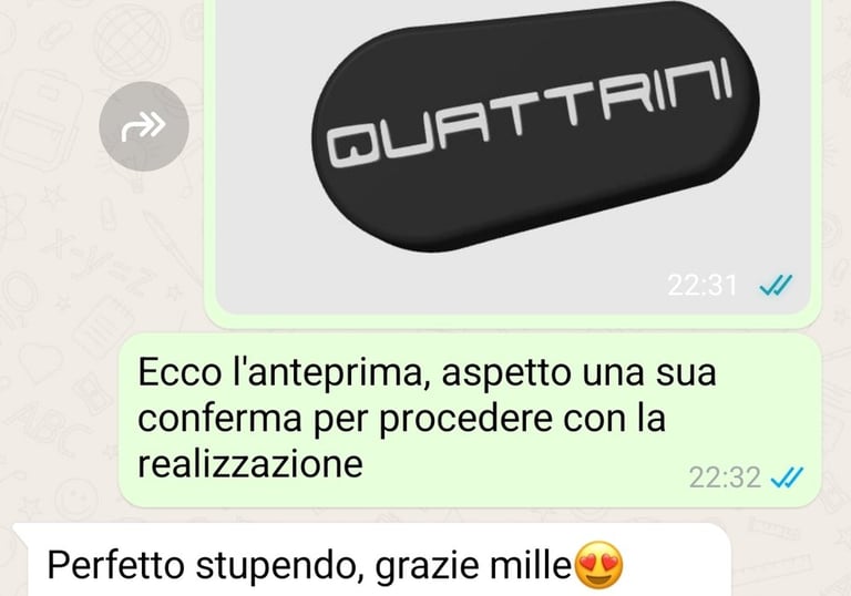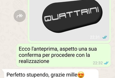 Infine, dopo aver ricevuto la tua conferma, andremo a realizzare il prodotto e a completare il tuo ordine